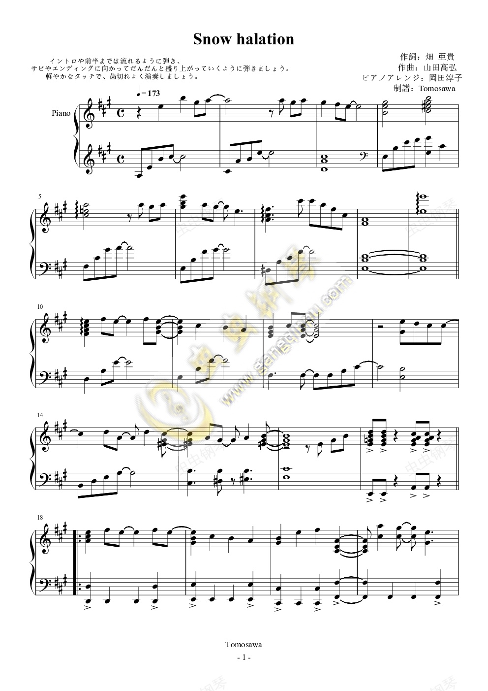 钢琴谱:【 LoveLive! 】Snow halation 官方原版