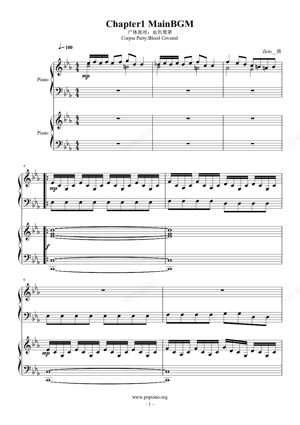 钢琴谱:【尸体派对-血色笼罩】第一章-主题曲