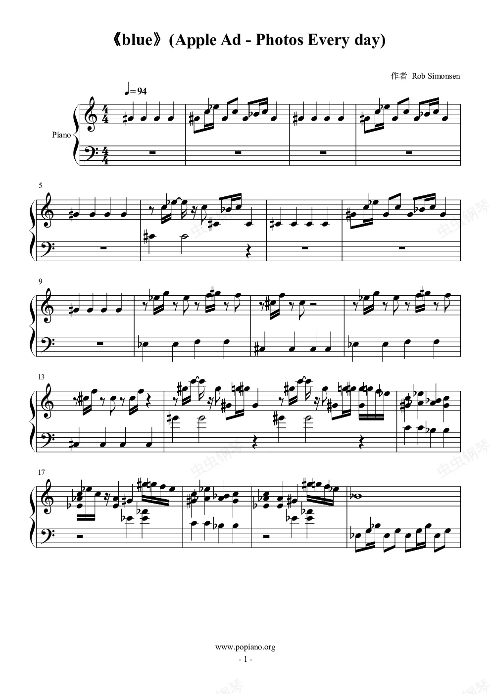 钢琴谱:《blue》(Apple Ad - Photos Every day)