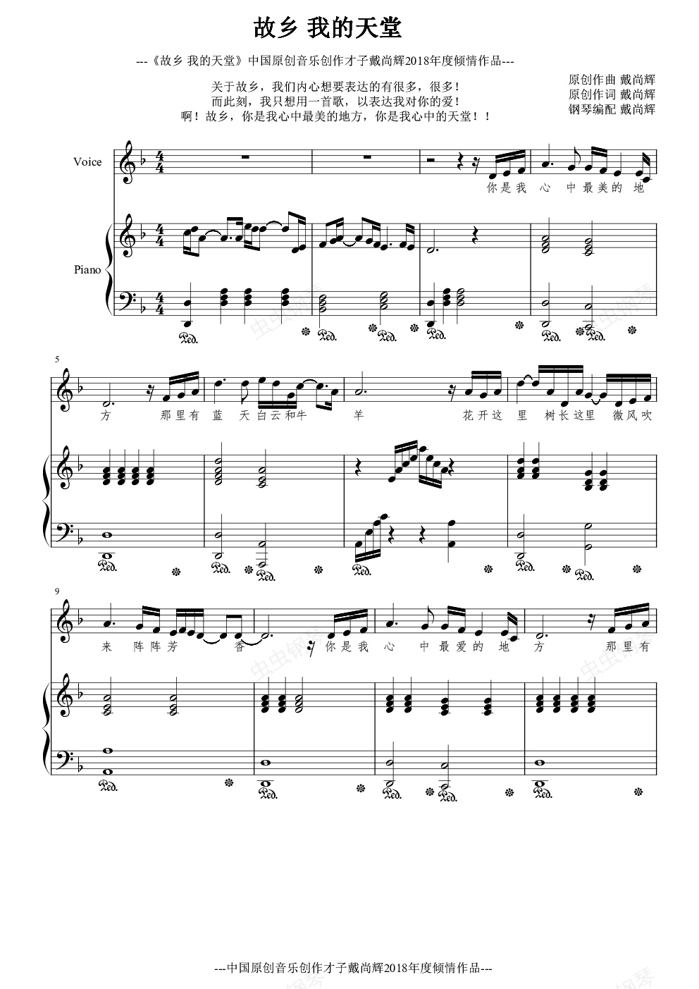 钢琴谱:故乡 我的天堂