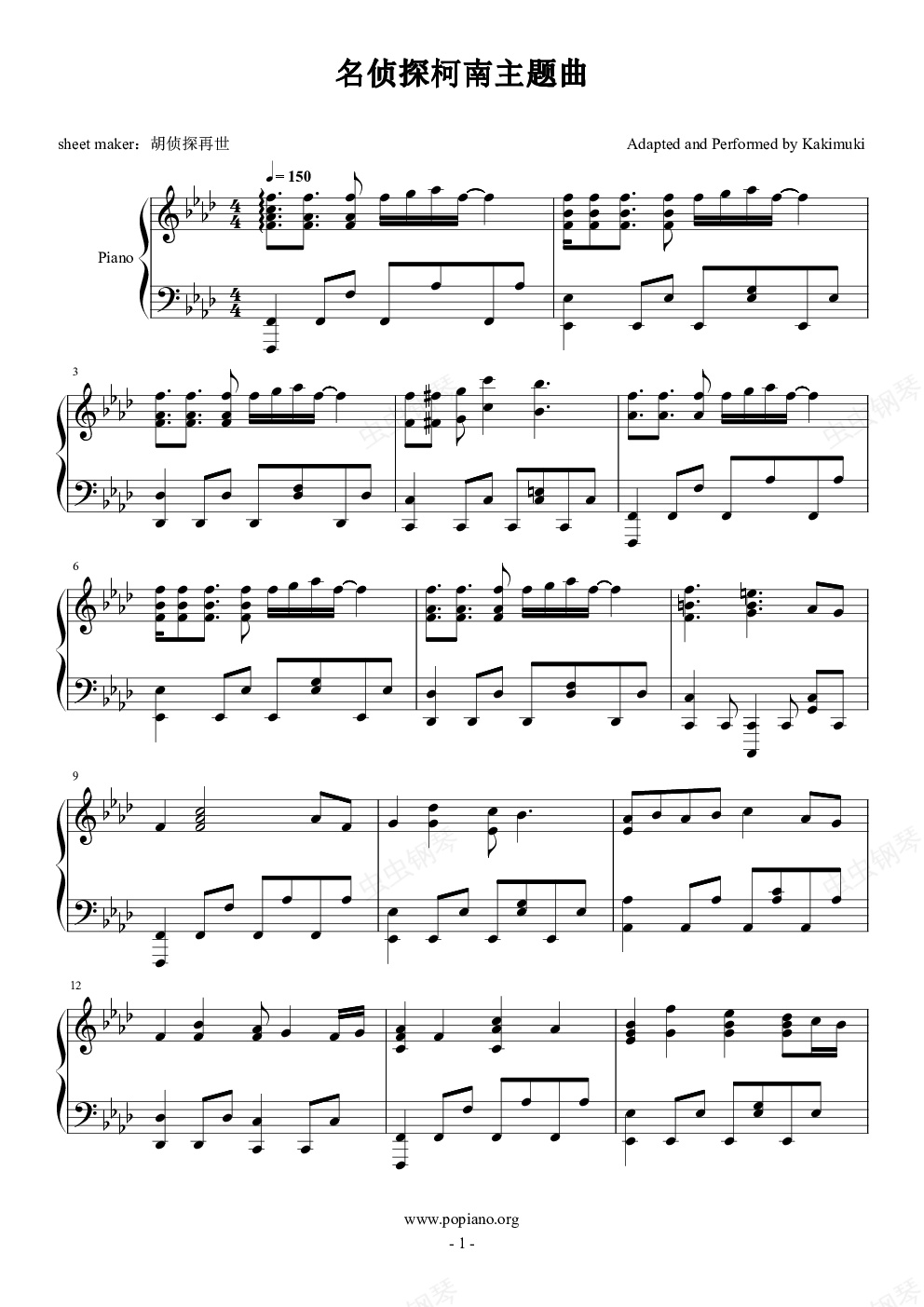 钢琴谱:【Kakimuki】名侦探柯南主题曲