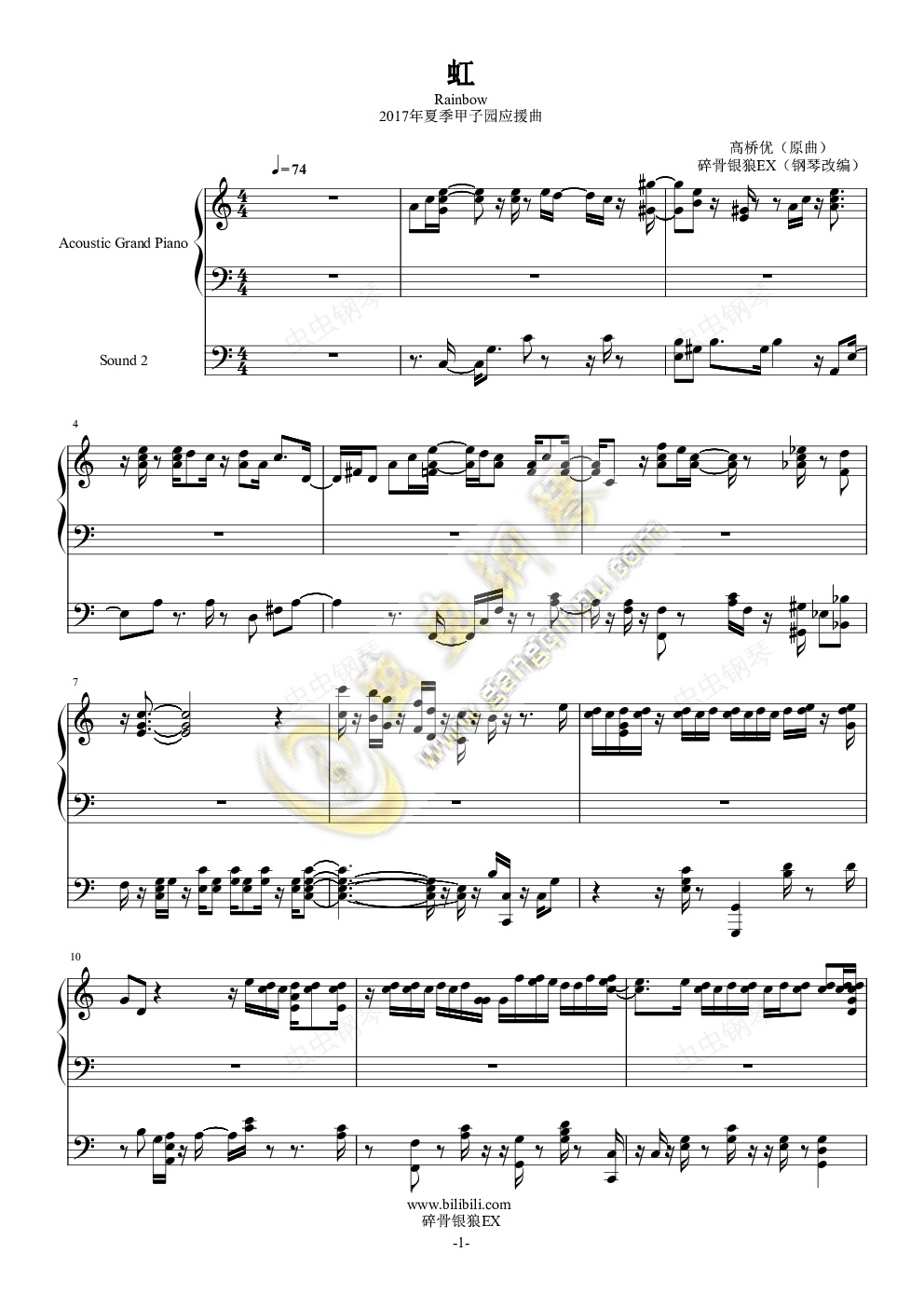 钢琴谱:高桥优《虹》(2017年夏季甲子园应援曲)