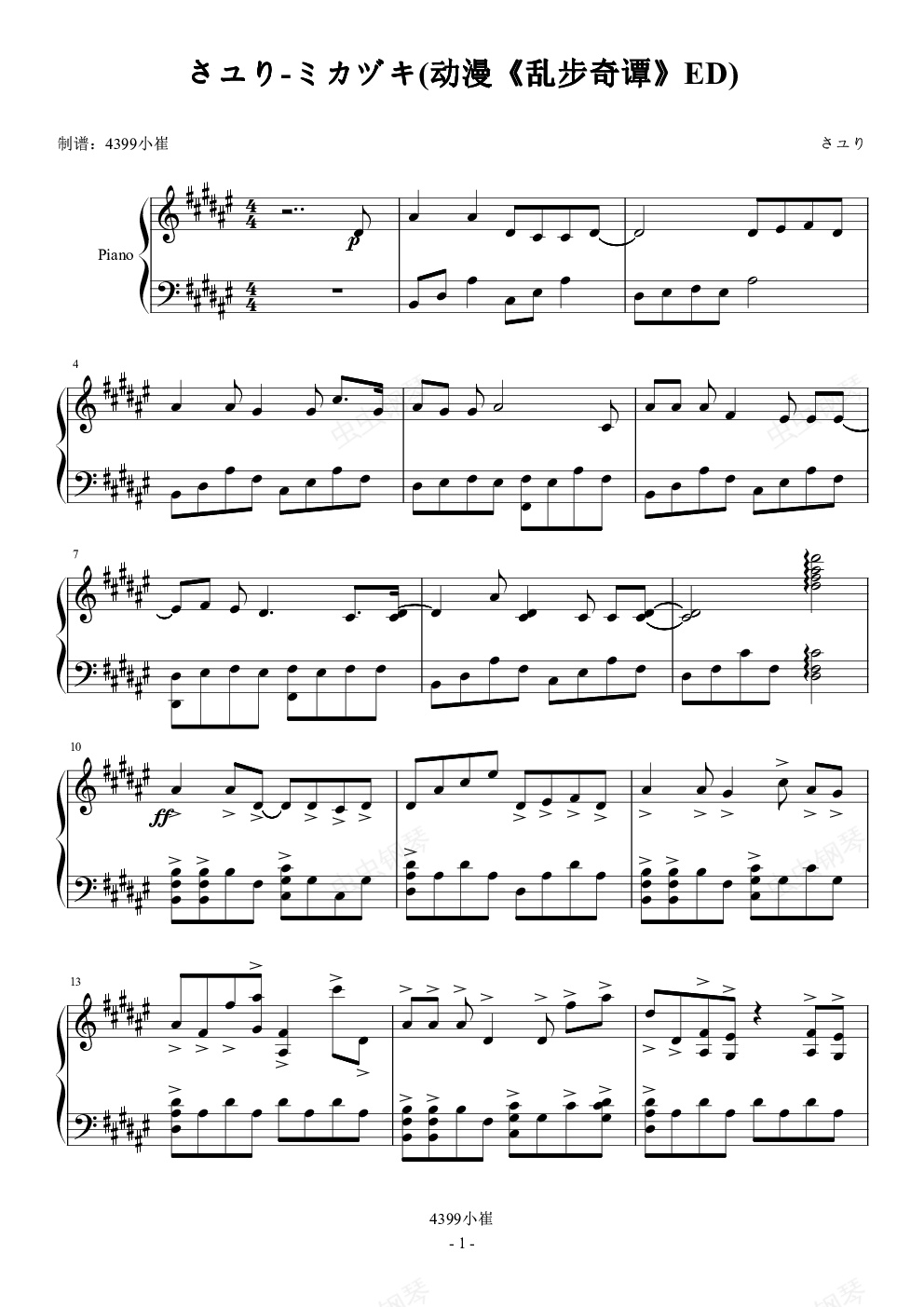 钢琴谱:さユり-ミカヅキ(动漫《乱步奇谭》ED)