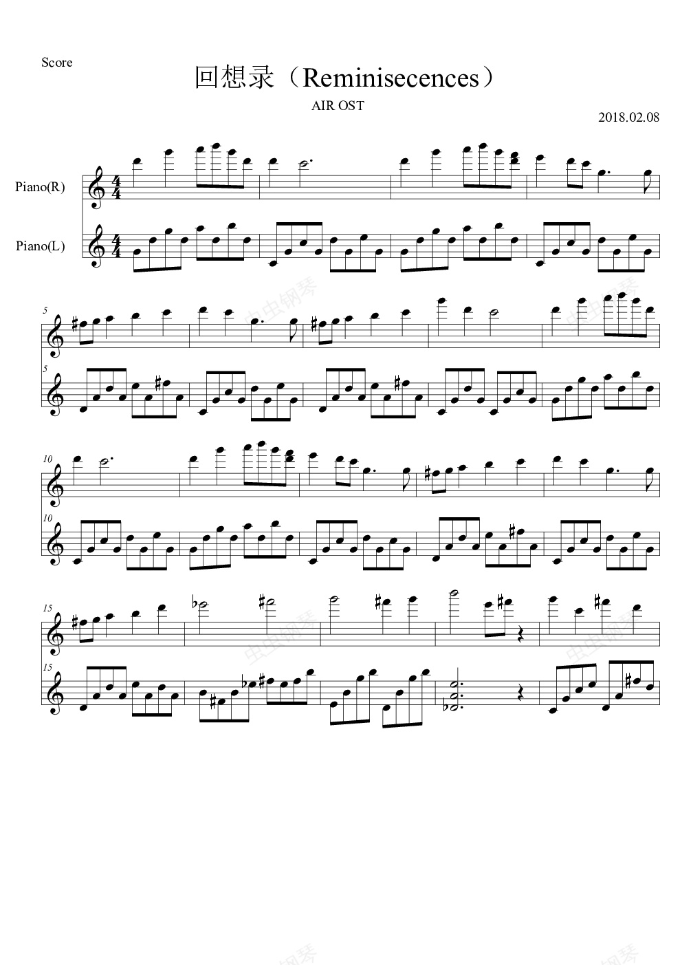 钢琴谱:AIR OST - 回想录(Reminisecences)