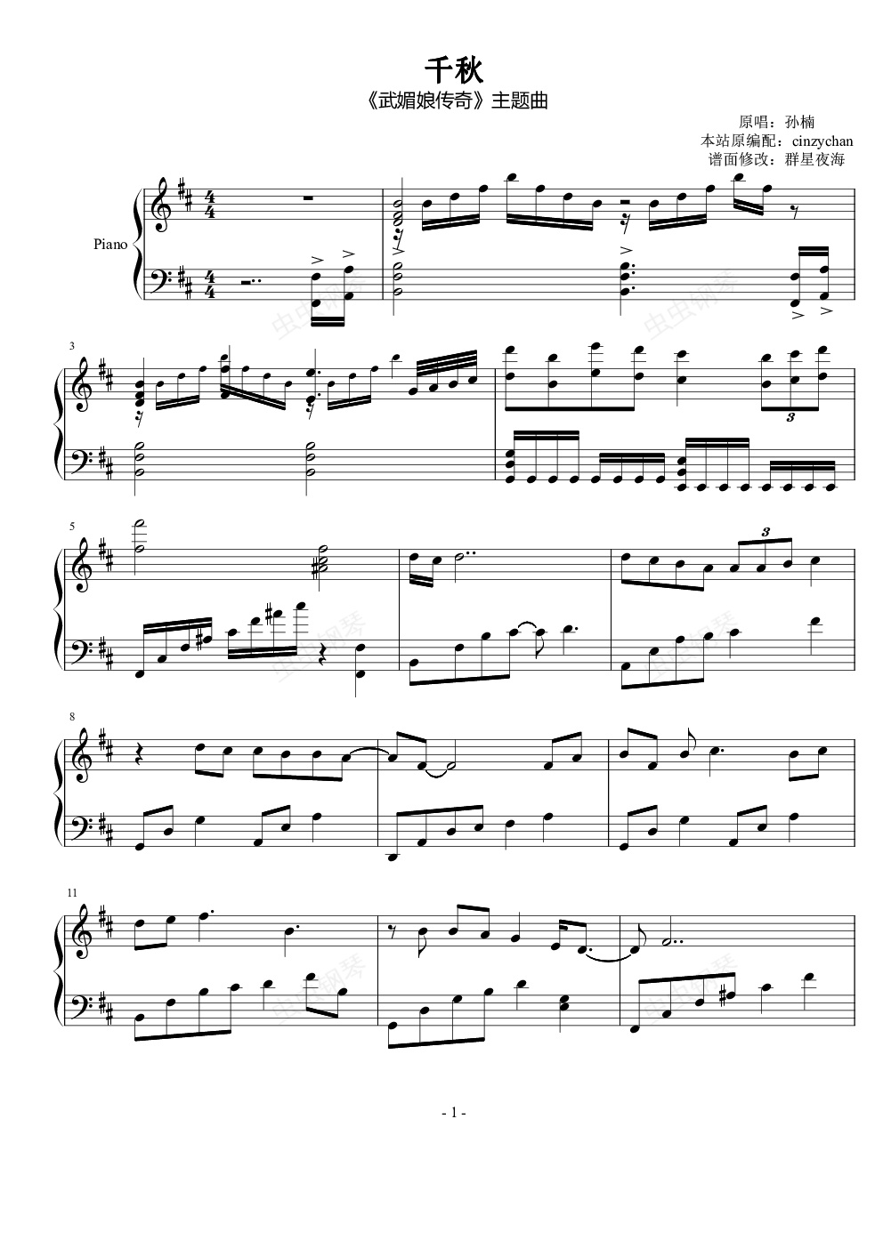 钢琴谱:千秋(修改完美版)— 《武媚娘传奇》主题曲
