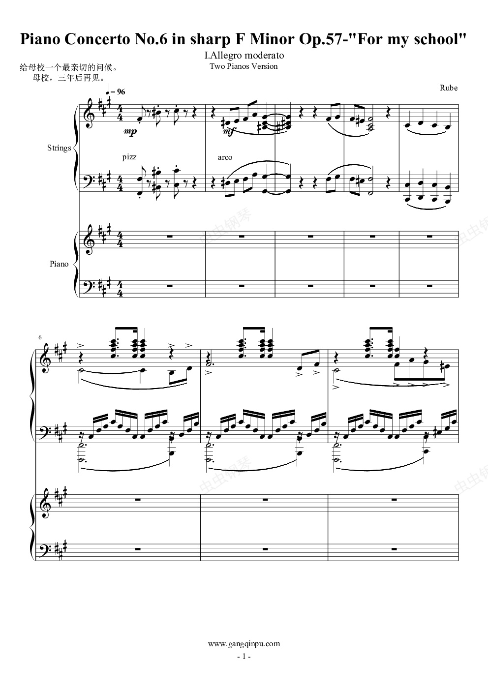 钢琴谱:Piano Concerto No.6 in sharp F Minor Op.57 I.