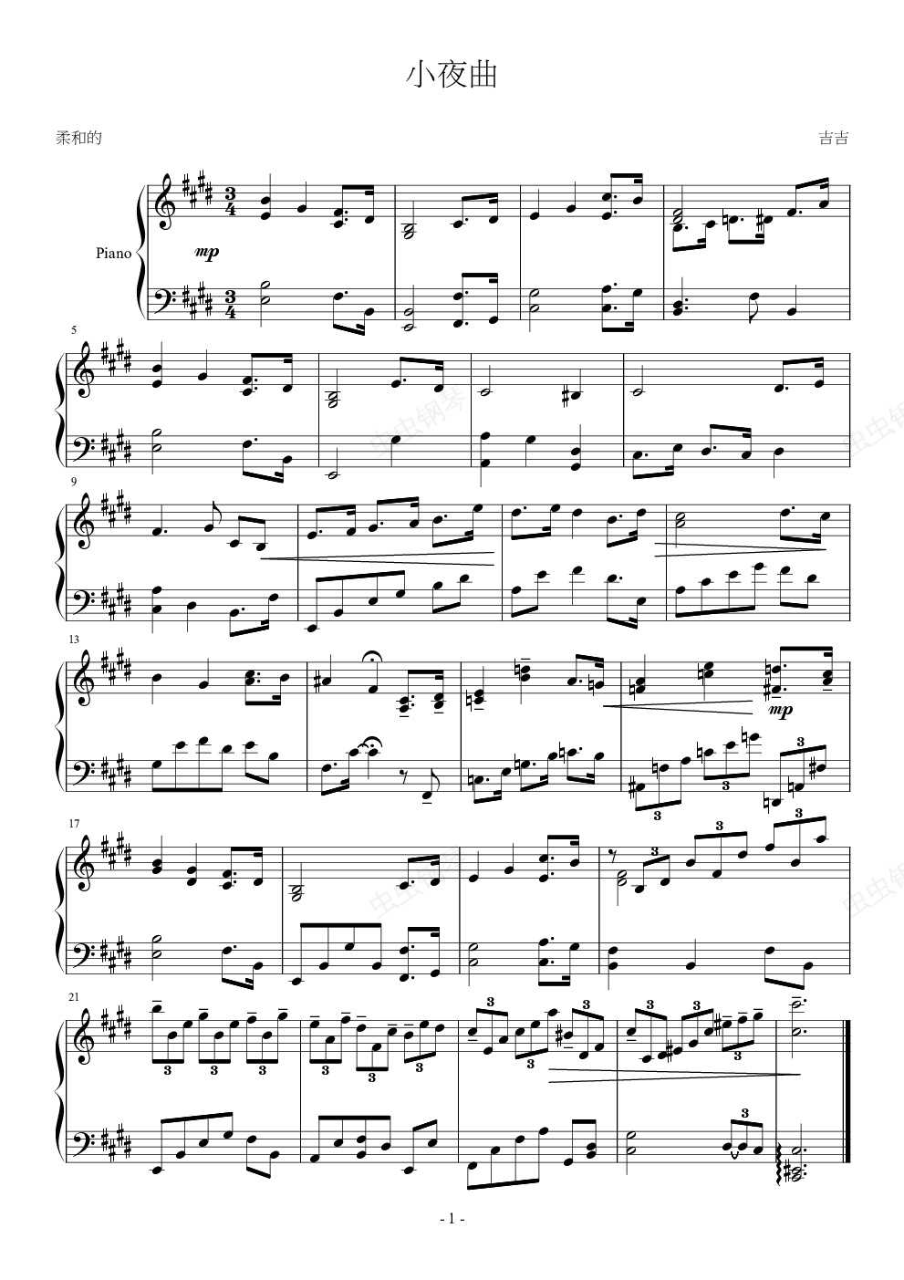 钢琴谱:小夜曲
