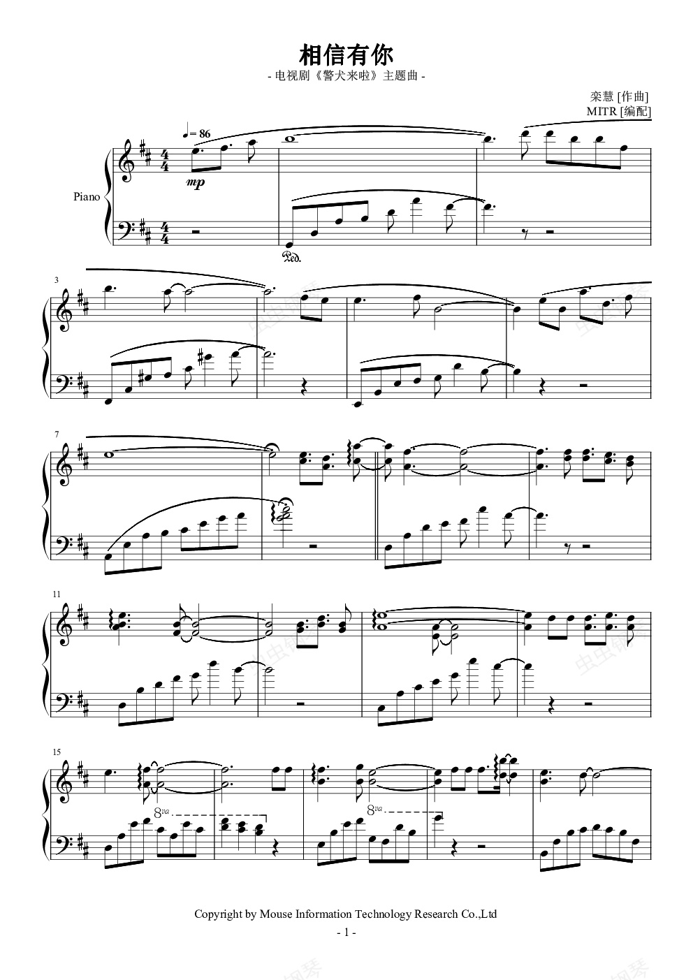 钢琴谱:电视剧《警犬来啦》主题曲 - 相信有你