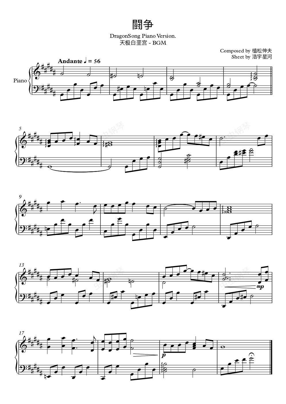 钢琴谱:【FF14】天极白垩宫BGM - 闘争