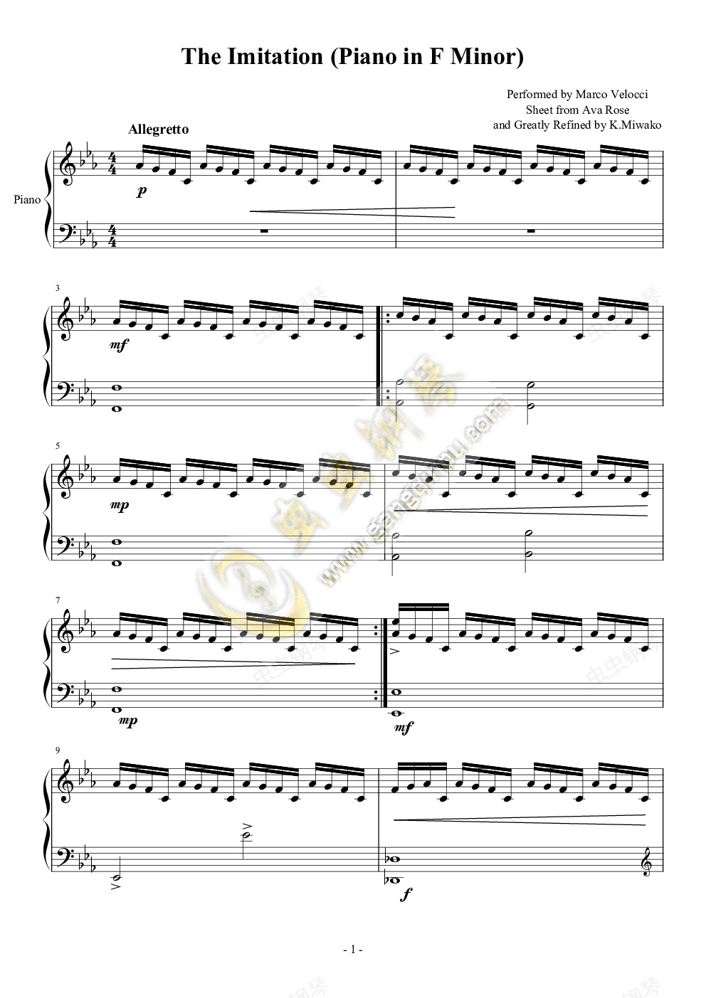 钢琴谱:《模仿游戏》主题曲The Imitation(Piano in F Minor)