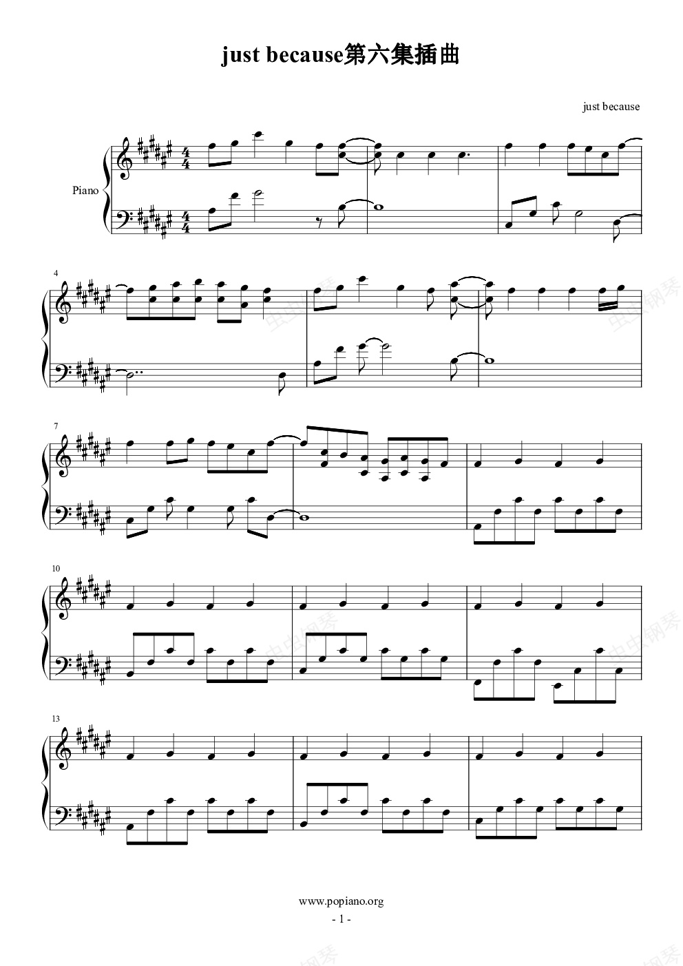 钢琴谱:just because第六集插曲