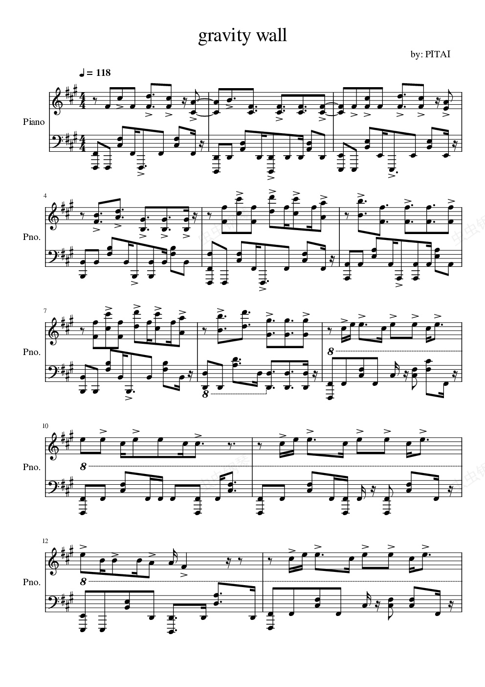钢琴谱:激昂版op【re:creator】 gravity wall 泽野弘之