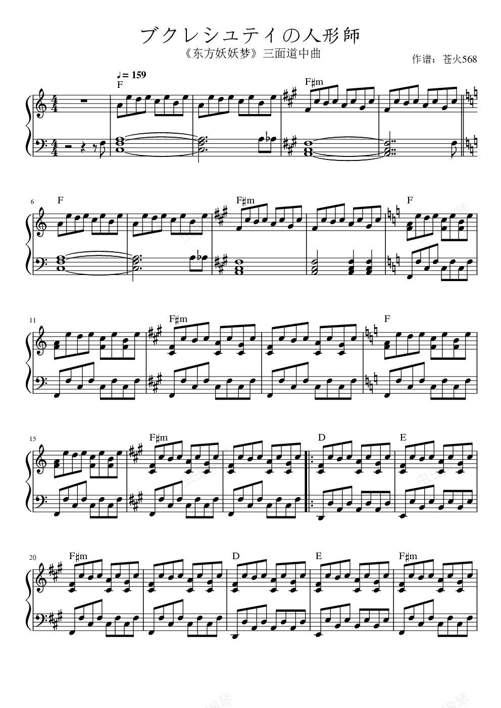 东方妖妖梦 小爱的道中曲尽自己所能试着还原了触手猴版...第一次扒谱 请各位多多指教[IMG]/pu/2018/3/3/__1039__[/IMG]我永远喜欢爱丽丝·玛格特罗依德.jpg