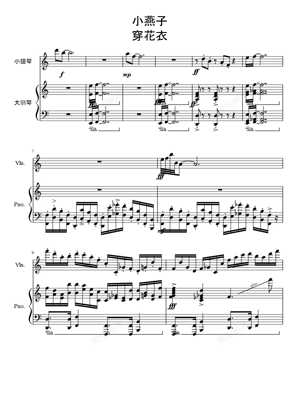钢琴谱:www.gangqinpu.com小燕子之歌