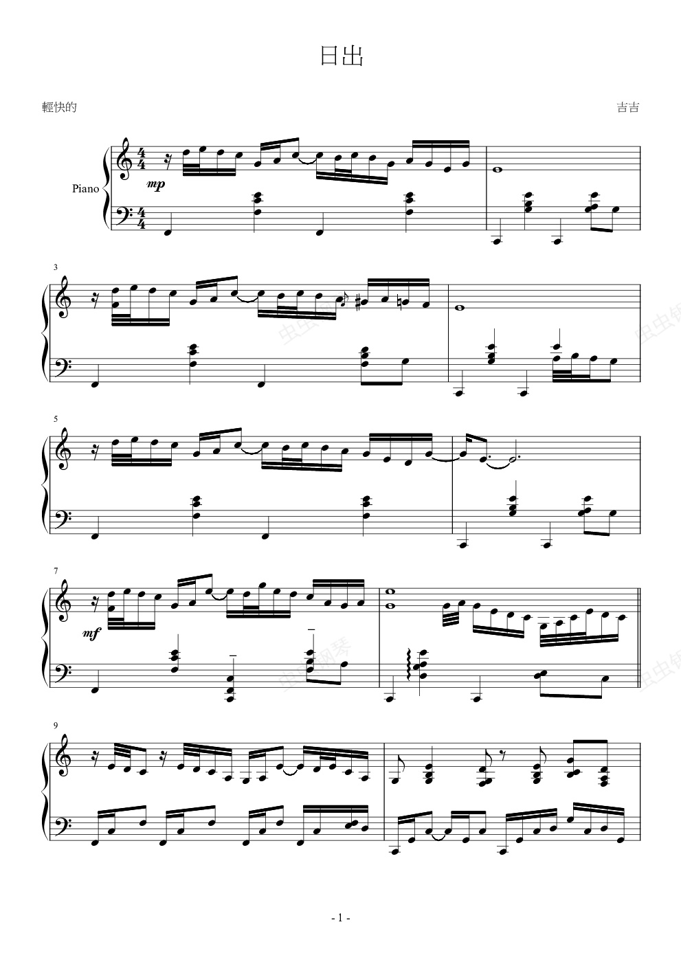 钢琴谱:日出