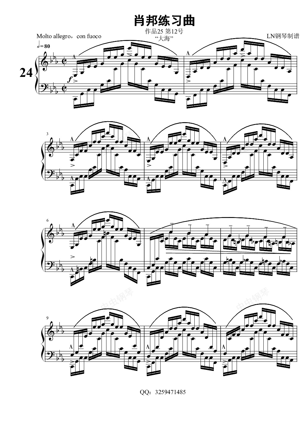 钢琴谱:肖邦练习曲“大海” Op.25 No.12