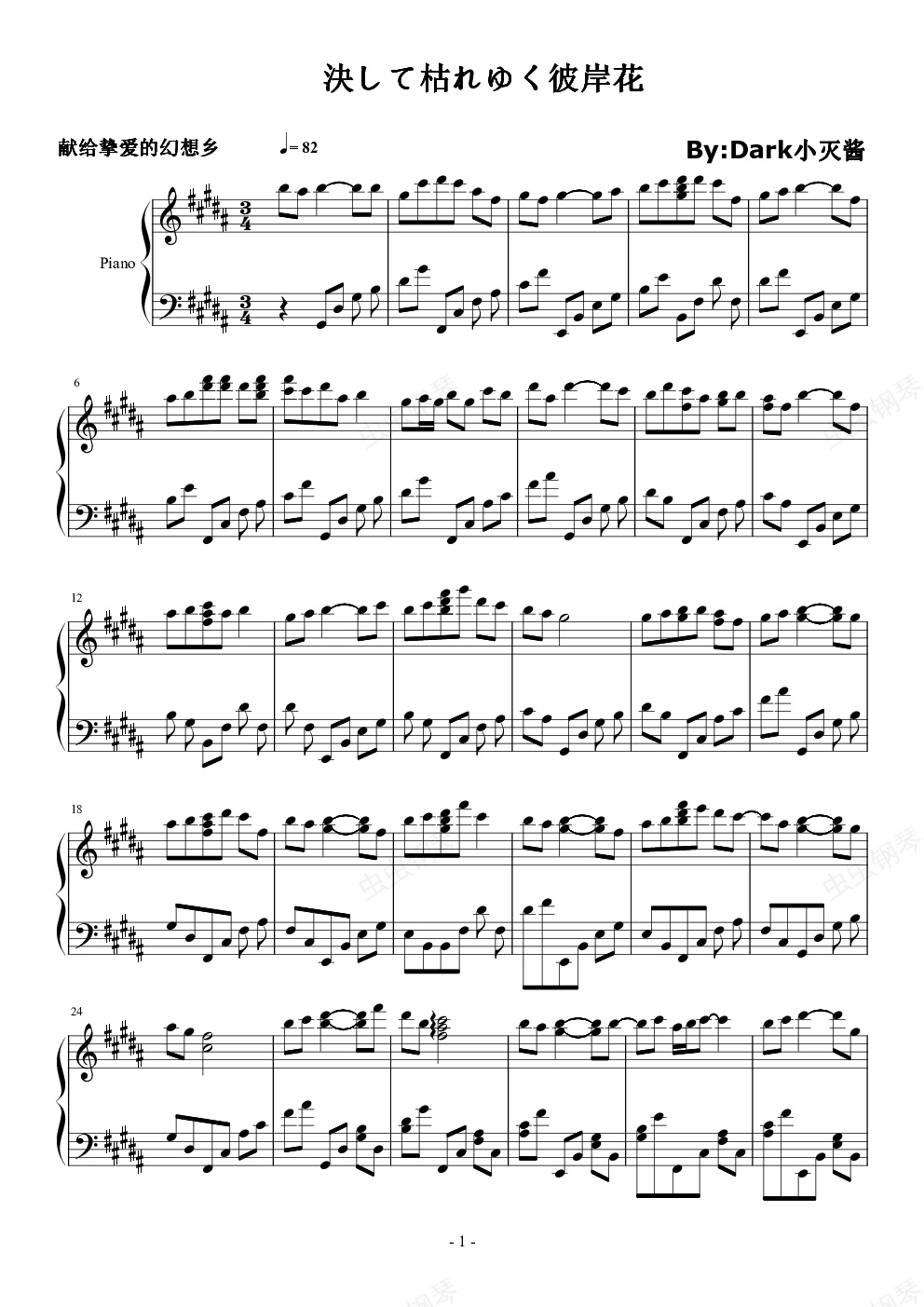 钢琴谱:永不凋零的彼岸花