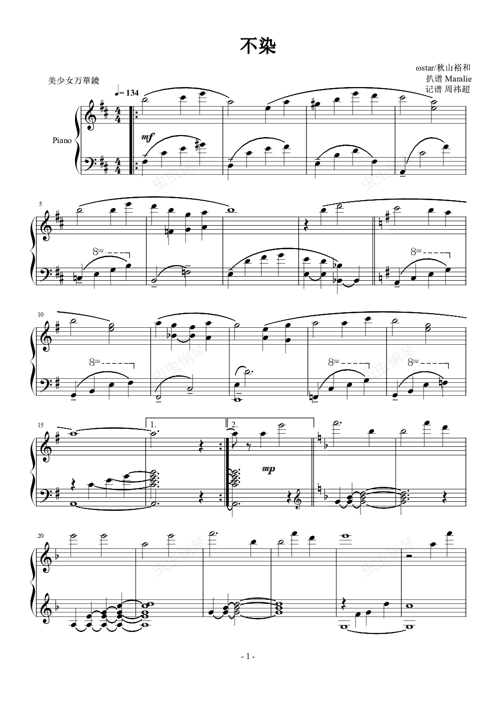 钢琴谱:不染[美少女万华镜]
