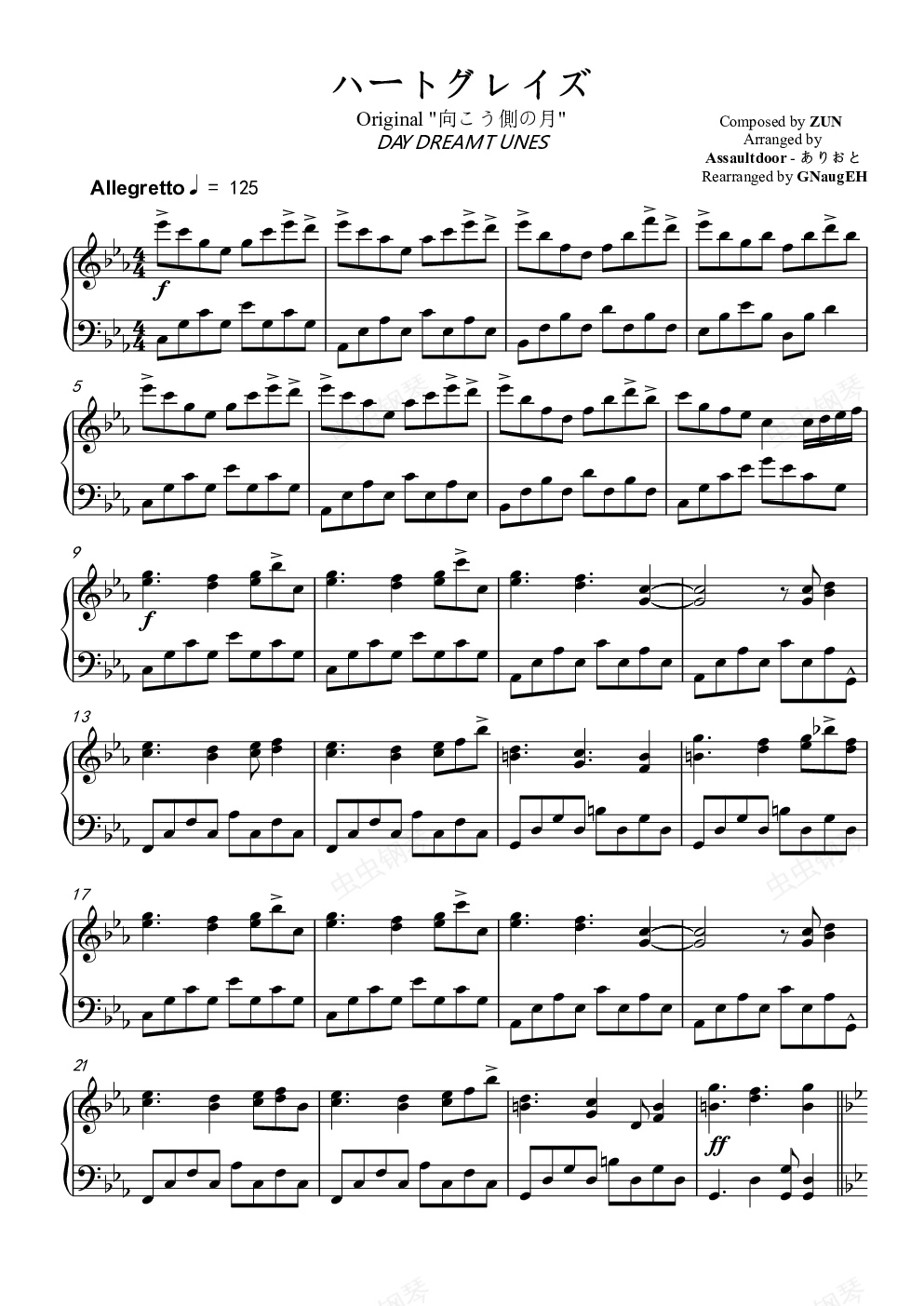 钢琴谱:【东方】【Assaultdoor】ハートグレイズ(原曲:向こう側の月)