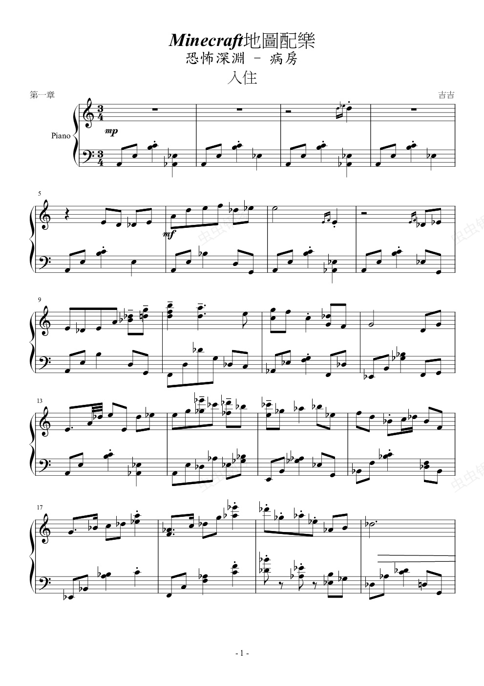 钢琴谱:恐怖深淵-病房 配樂
