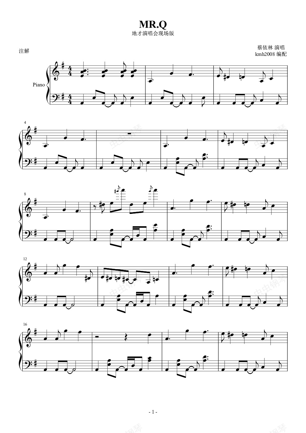 钢琴谱:《MR.Q》地才现场版
