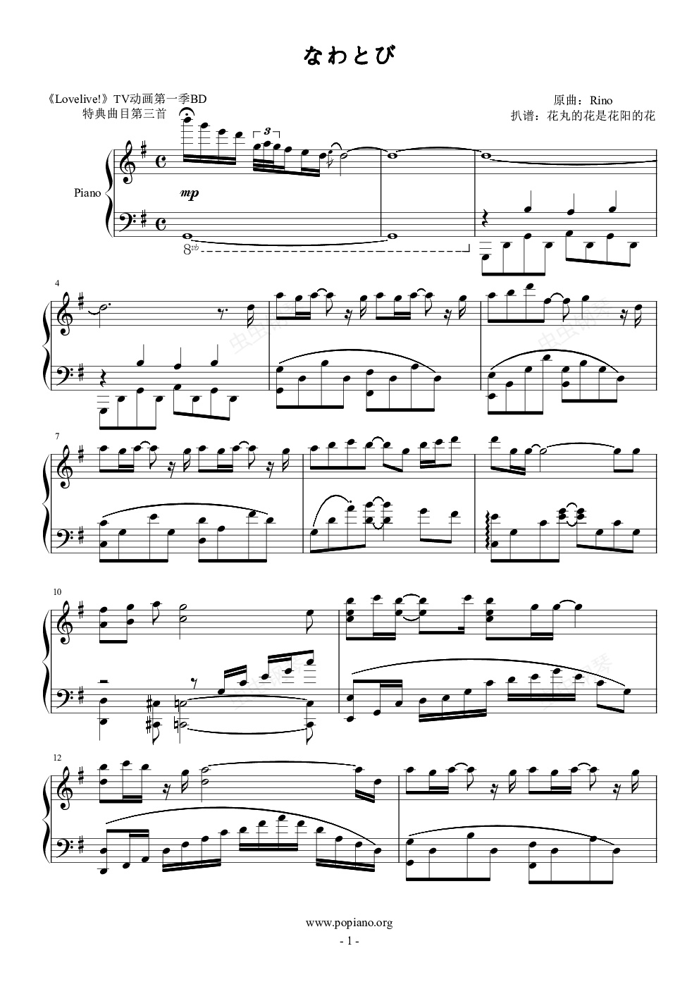 钢琴谱:【Lovelive】小泉花阳~なわとび(跳绳)