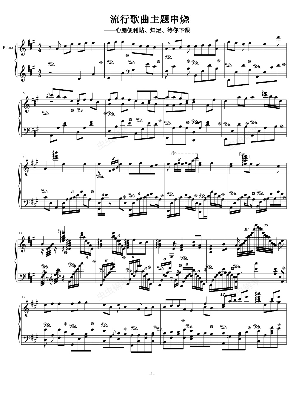 钢琴谱:心愿便利贴、知足、等你下课