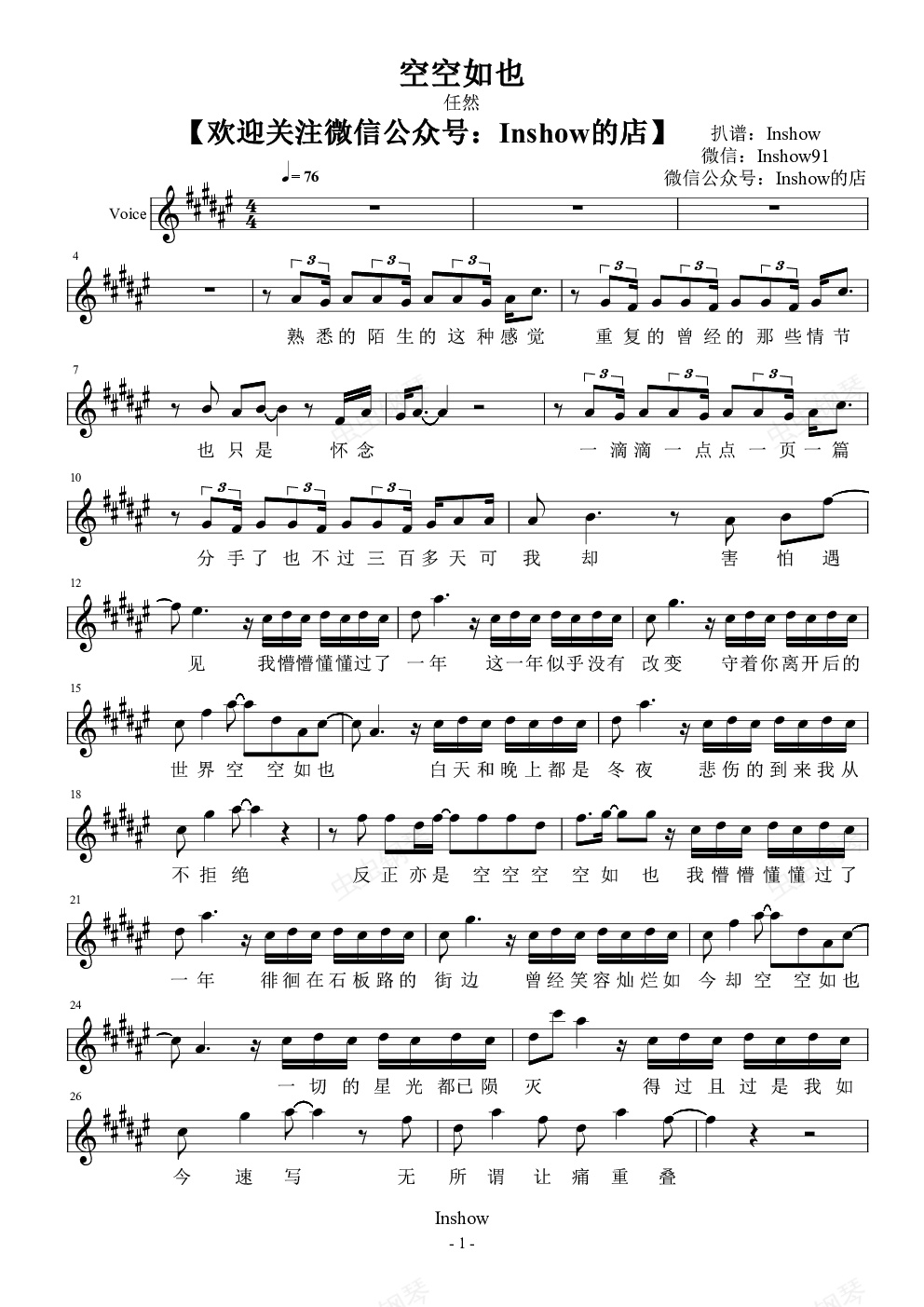 钢琴谱:任然 - 空空如也【曲谱试听】