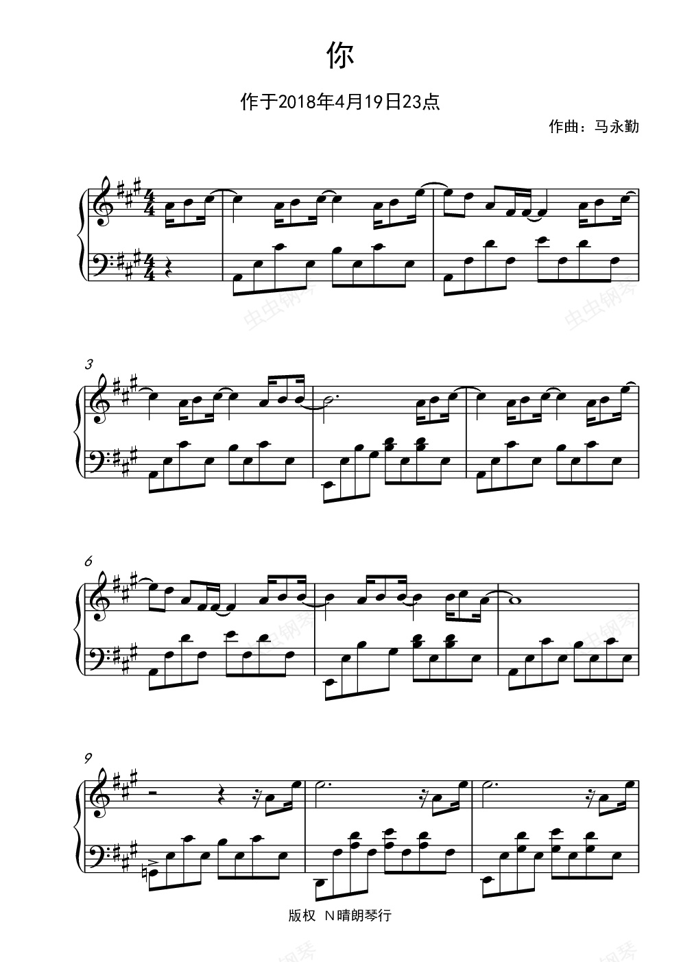 钢琴谱:你