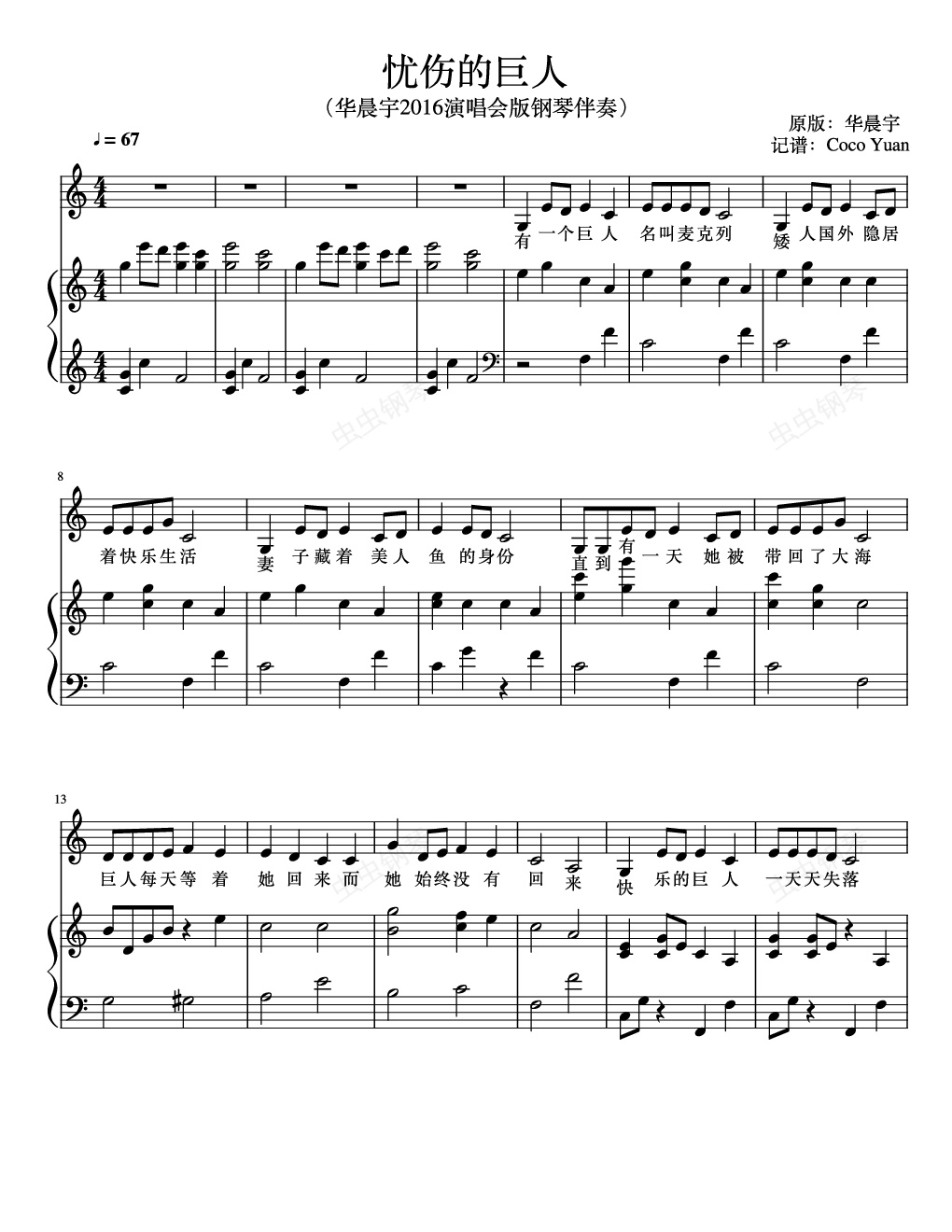 钢琴谱:忧伤的巨人 演唱会弹唱谱