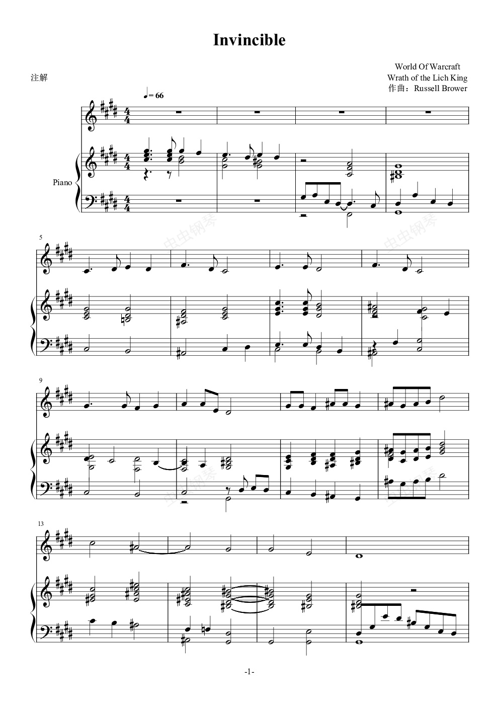 钢琴谱:魔兽世界巫妖王的陨落--Invincible