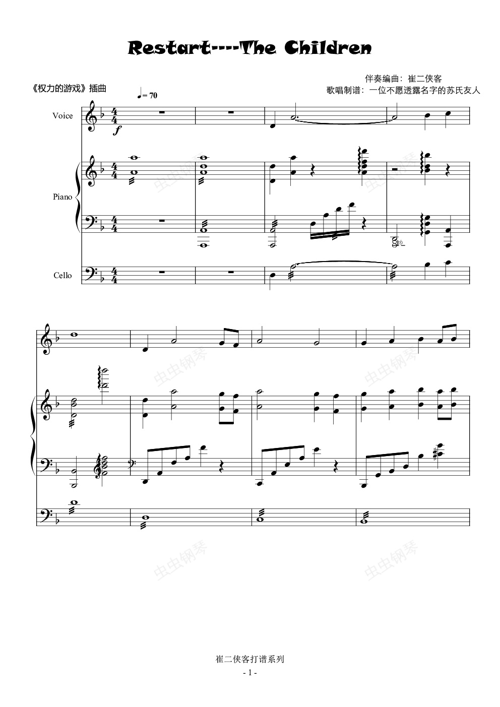 钢琴谱:Restart——The Children《权力的游戏》插曲