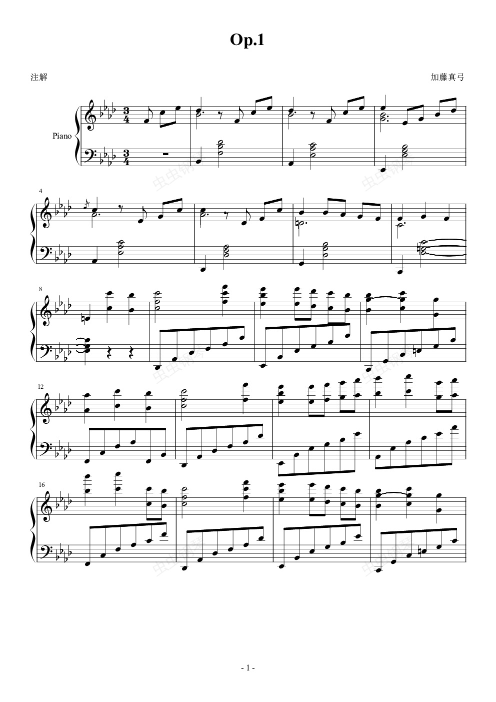 钢琴谱:Op.1