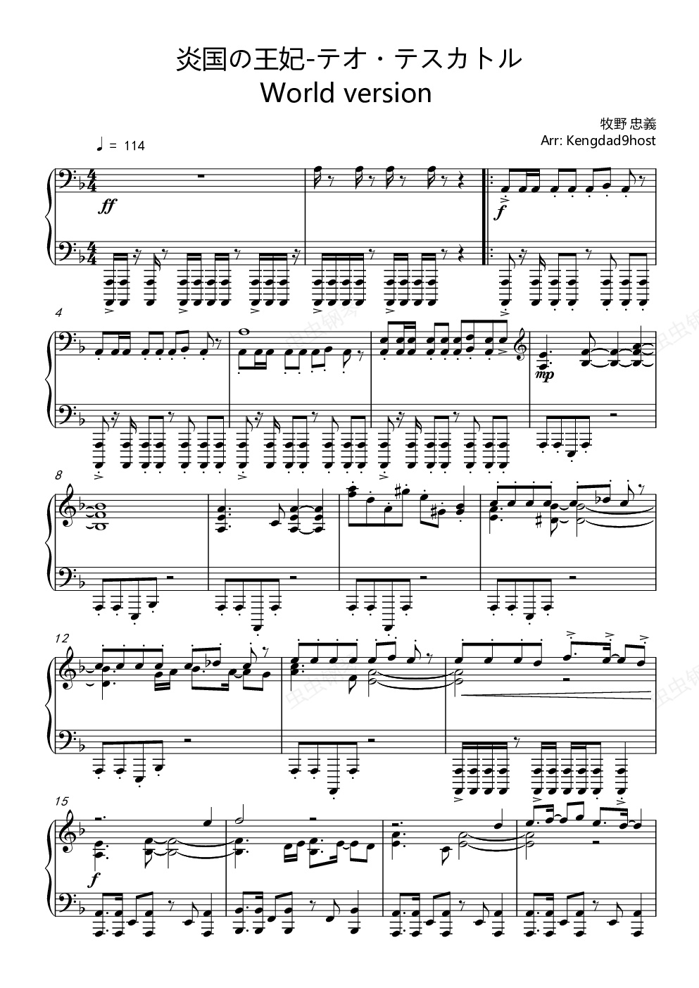 钢琴谱:怪物猎人世界-炎王龙主题曲 World version