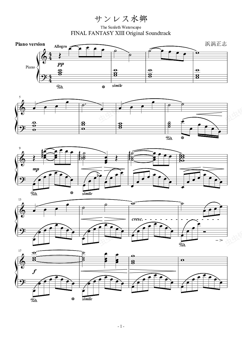 钢琴谱:日落水乡