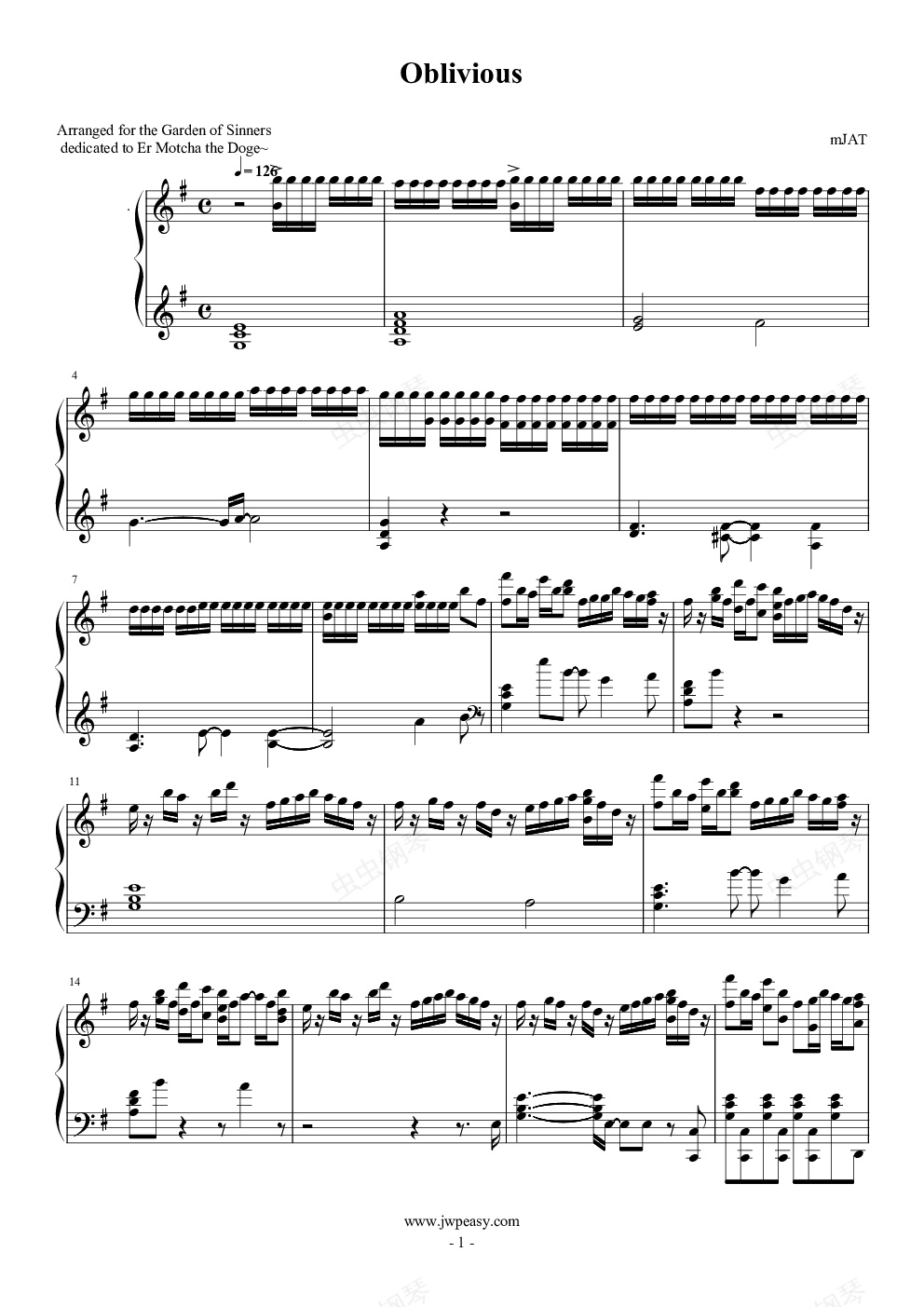 【mJAT】 高难度还原版以此献给心中永远第一的神作!!空境一生推!希望大家喜欢!!另外 这是我第一张花费了如此多时间来找音的谱。大神的和声真的很丰富,而我决定将它们尽可能地保留在右手的声部中。技术要求:轮指、震音、三手技巧(单手多声部)、双音琶音、琶音跑动、十六度大跳推荐练习曲:La(开玩笑的233)[IMG]/pu/2018/5/12/__2226_75950_[/IMG]