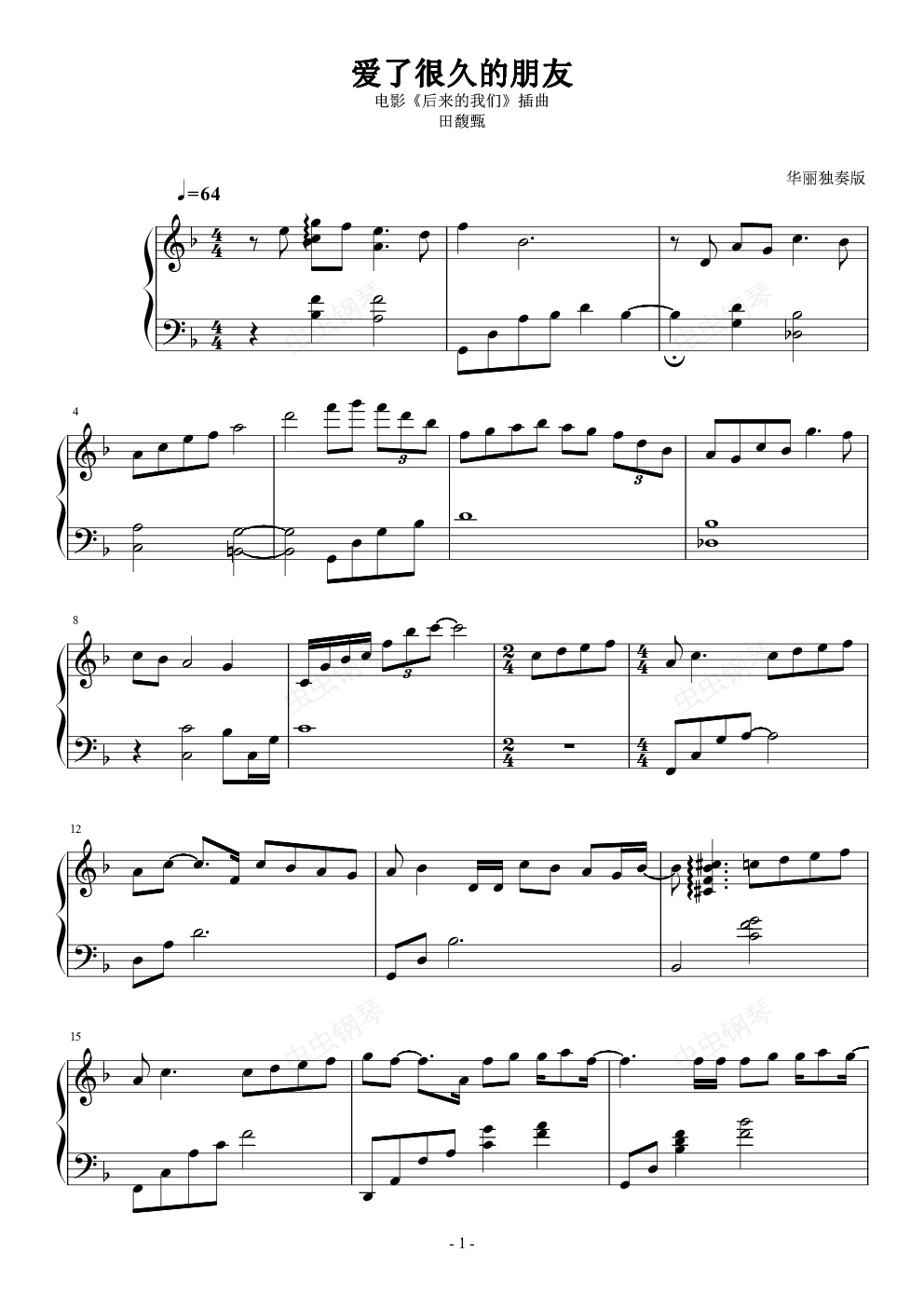 钢琴谱:爱了很久的朋友 华丽独奏
