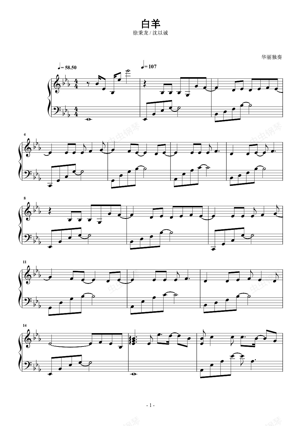 钢琴谱:白羊 华丽独奏