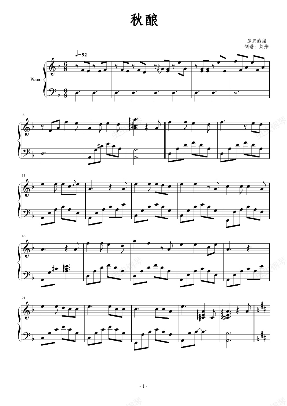 钢琴谱:秋酿