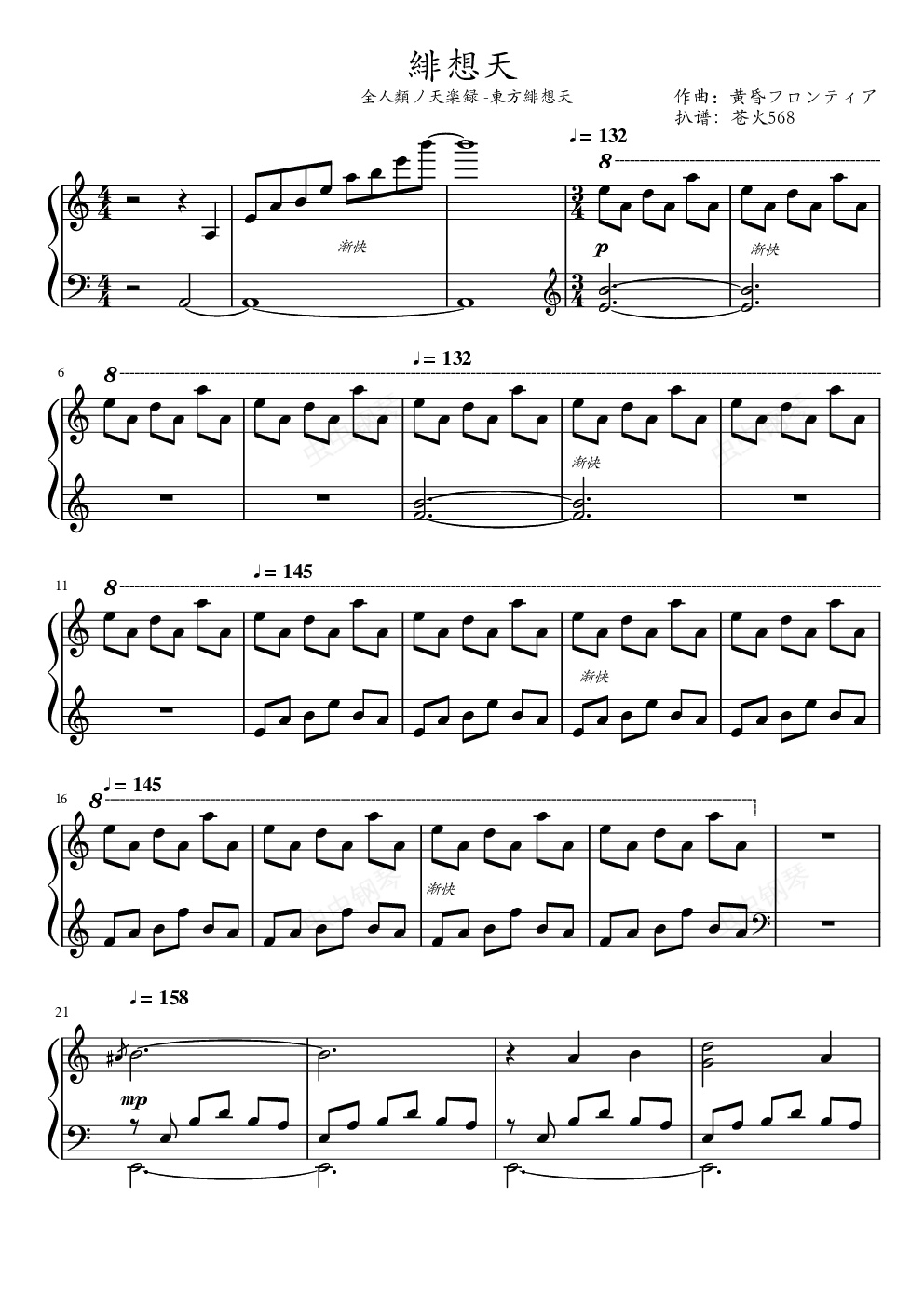 东方绯想天的标题画面主题曲 我个人的入坑作(笑) 在网易云音乐上听到的官方专辑(全人類ノ天楽録 -東方緋想天 SOUND TRACK)里的钢琴曲 觉得有意思就扒下来了 弹奏时请注意左手的谱号变化 原曲在试听二 来源于网易云音乐 [IMG]/pu/2018/5/27/__5773_05628_[/IMG]图片来源