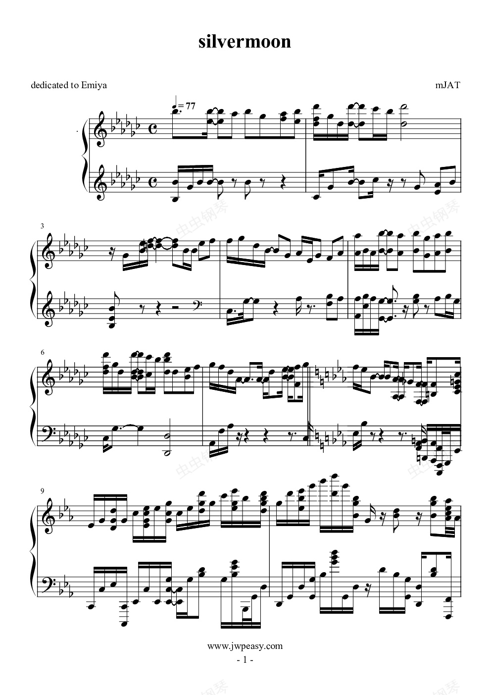 钢琴谱:silvermoon ~finale~ Fate/Zero