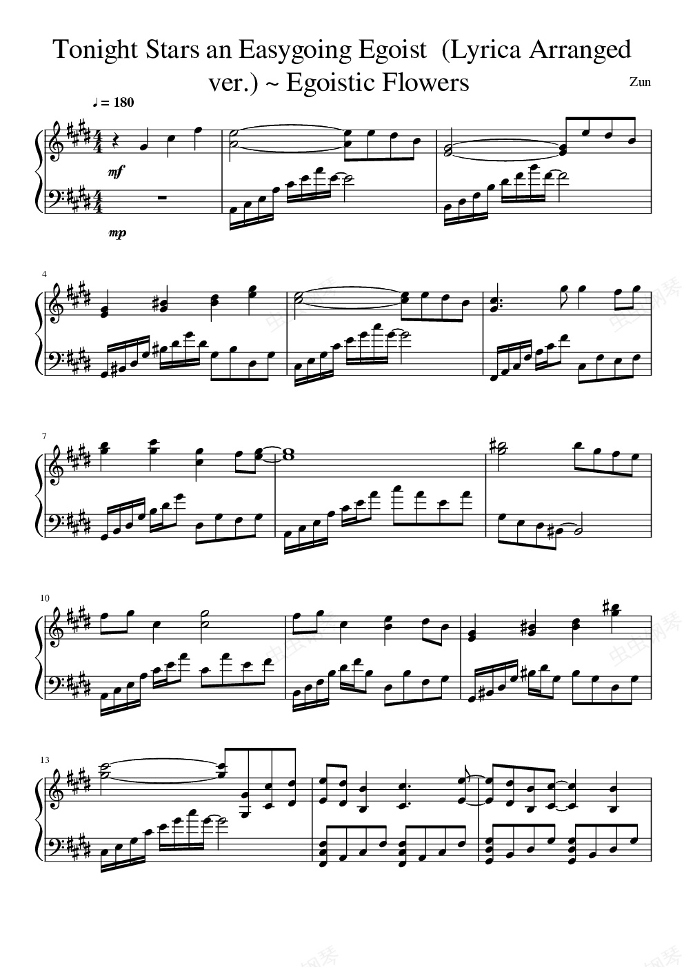 钢琴谱:【东方凭依华】今宵是飘逸的自我主义者