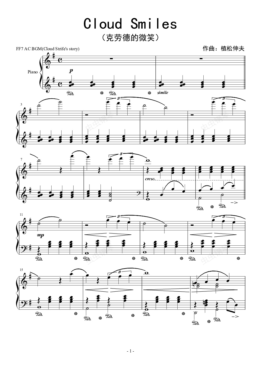 钢琴谱:克劳德的微笑