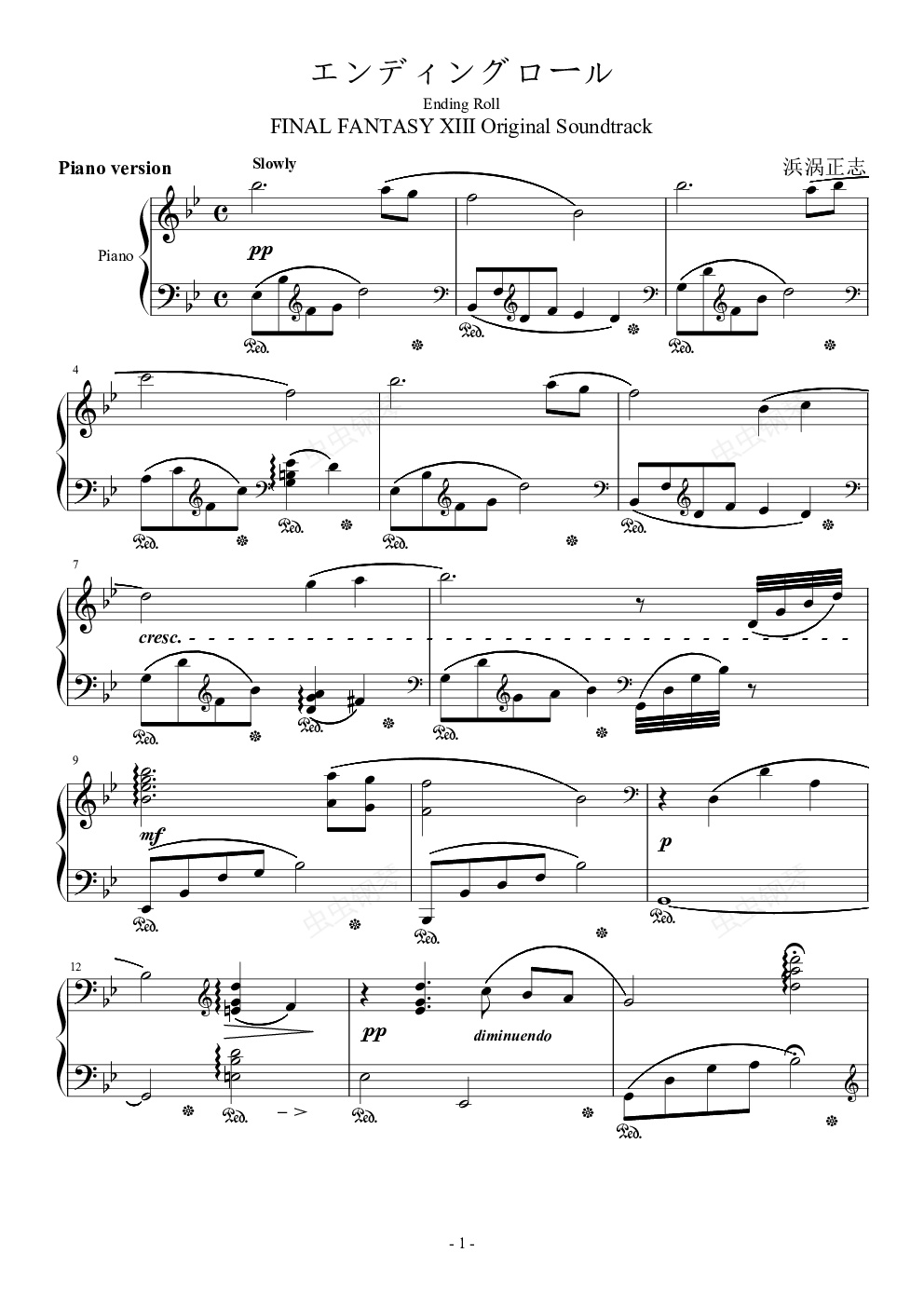 钢琴谱:最终幻想13 片尾动画(エンディングロール)