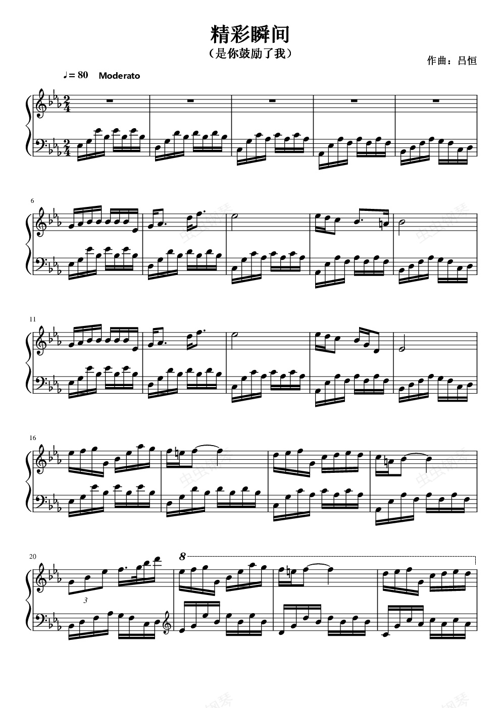 吕恒-精彩瞬间原创钢琴曲作曲:吕恒作词:吕恒演奏:吕恒钢琴曲纯音乐作品,请您欣赏。Life is like the ocean of love生活如爱的海洋The of rain drops into the在雨滴流淌心房的精彩瞬间Let feel the of love.让人感受到爱的温馨Life is like a night sky.生活如美丽的夜空In the of star在繁星挥霍的精彩瞬间Let feel the.让人感受到壮丽的美Life is like an piano.生活如优雅的钢琴In the of notes在音符灵动的精彩瞬间Let feel the rich and life.让人感受到生命的丰富多彩 seem to be the of our path.精彩瞬间仿佛是我们成长道路上的一个个脚印 our joy and...承载着我们的欢乐、哀伤...... are like smart notes.精彩瞬间就像一个个灵动的音符 our life into a.将我们的生活谱写成一曲动人的乐章 are.精彩瞬间是美妙的A cute photo of an hour.一张小时侯稚嫩可爱的照片Let's our in our lives.让我们回忆起生命中的童年Be light of heart from care无忧无虑These这些童年的片段Let us taste the most sweet fruit of.让我们品尝到了仲夏最鲜甜的果实It is a sweet in the of life.它是人生旅程的一个甜蜜的瞬间The is.精彩瞬间是苦涩的 in every and down在每一次孤独中奔跑倒地It is that will be to irony.难免会遭到别人恶意的讽刺......But we need not lose heart.可是我们不必灰心These make us and brave.这些失败让我们变得坚强、勇敢It is the tower for our.它是我们前进途中的指示塔 us to learn to face.告诫我们学会面对困难 are.精彩瞬间是多姿多彩的It a in life.它构成生命悠扬的篇章 music谱写耐人寻味的乐曲The is.精彩瞬间是永恒的It gives the of not being.它永远赋予人们不要气馁的品质 teach us to our.永远教会我们要追求自己的理想