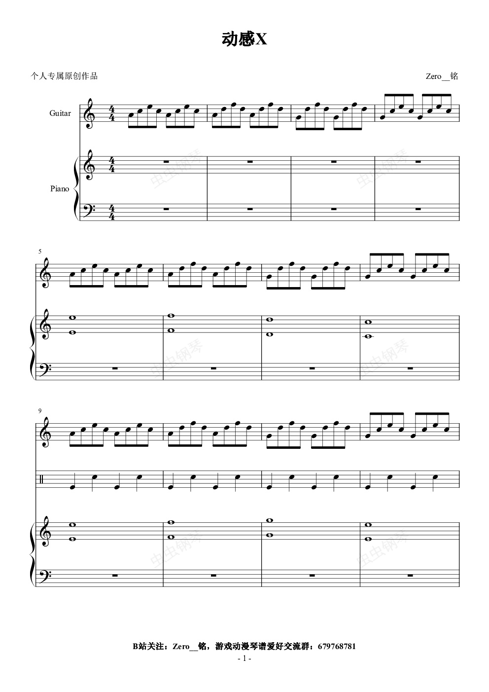 钢琴谱:【动感X】个人第一首原创