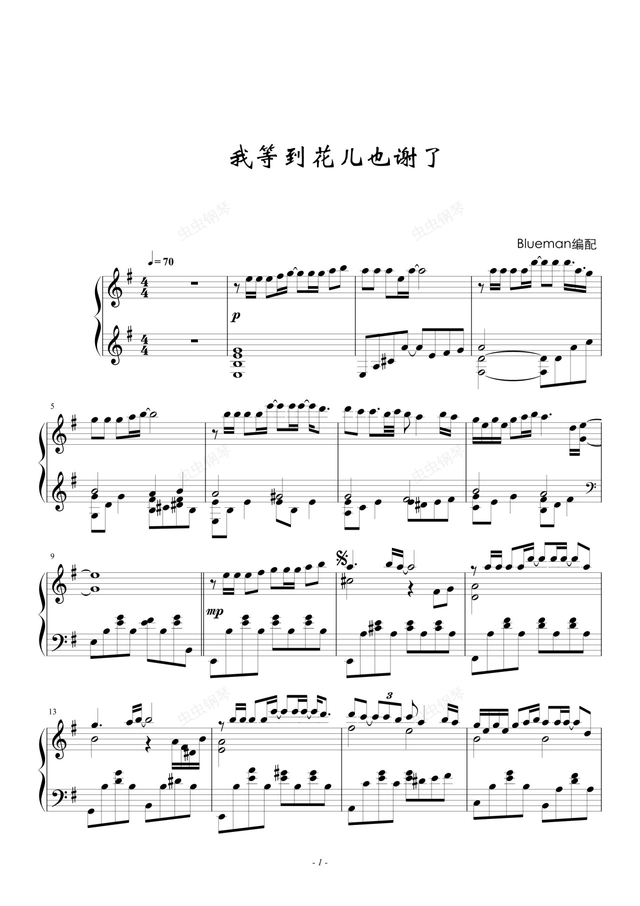 钢琴谱:我等到花儿也谢了
