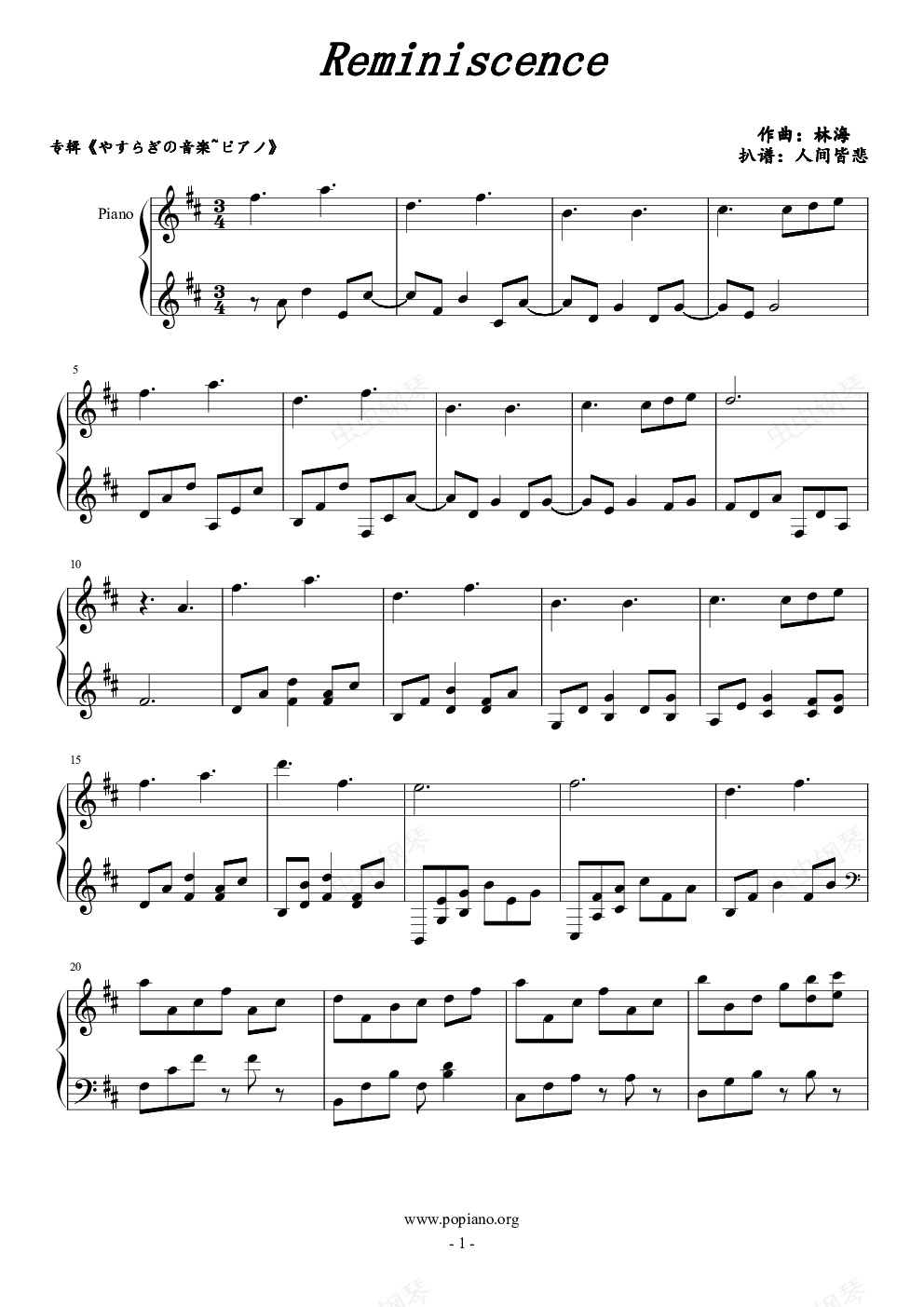 钢琴谱:林海—《Reminiscence》(苏醒)