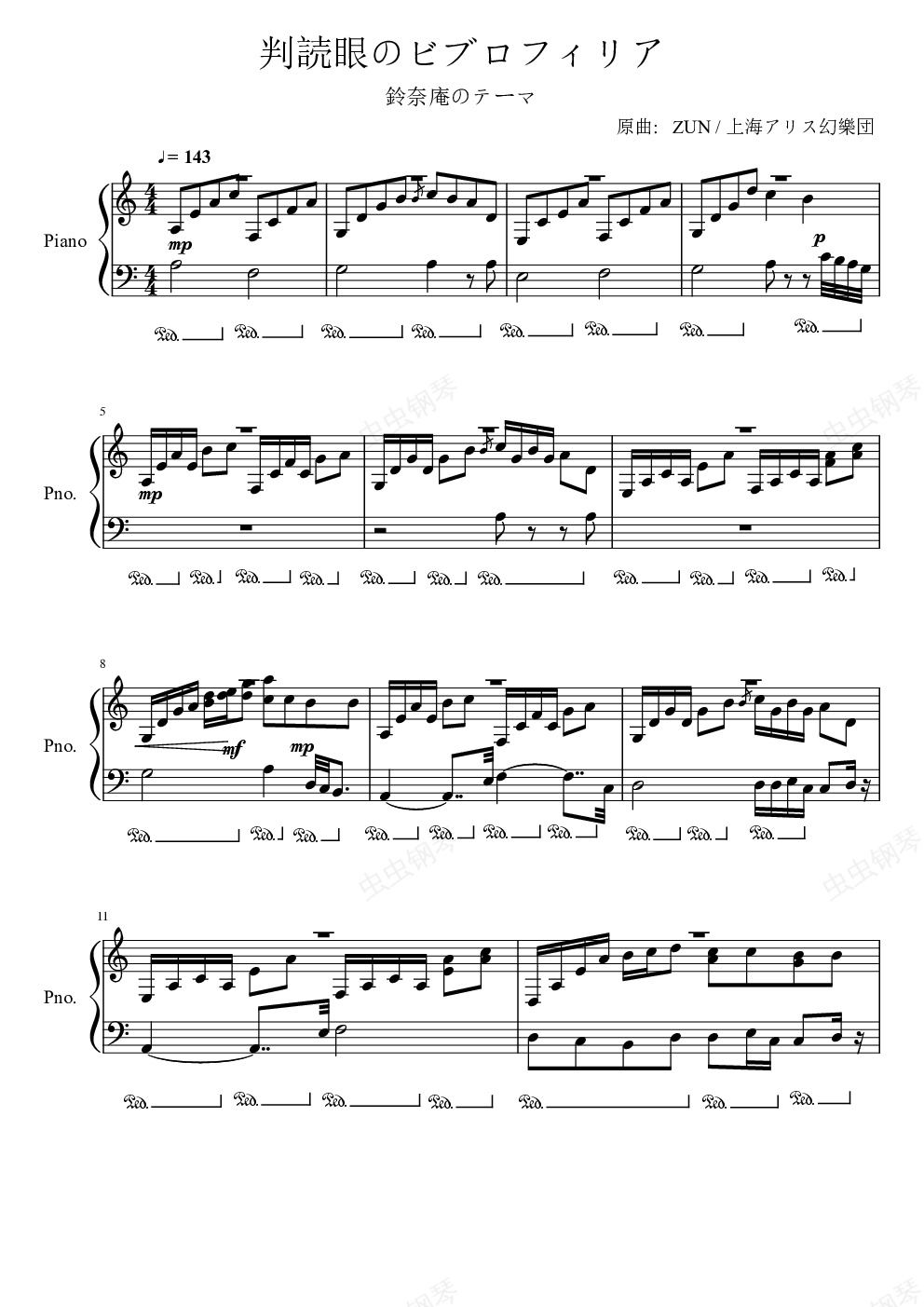 钢琴谱:【东方铃奈庵】识文解意的爱书人