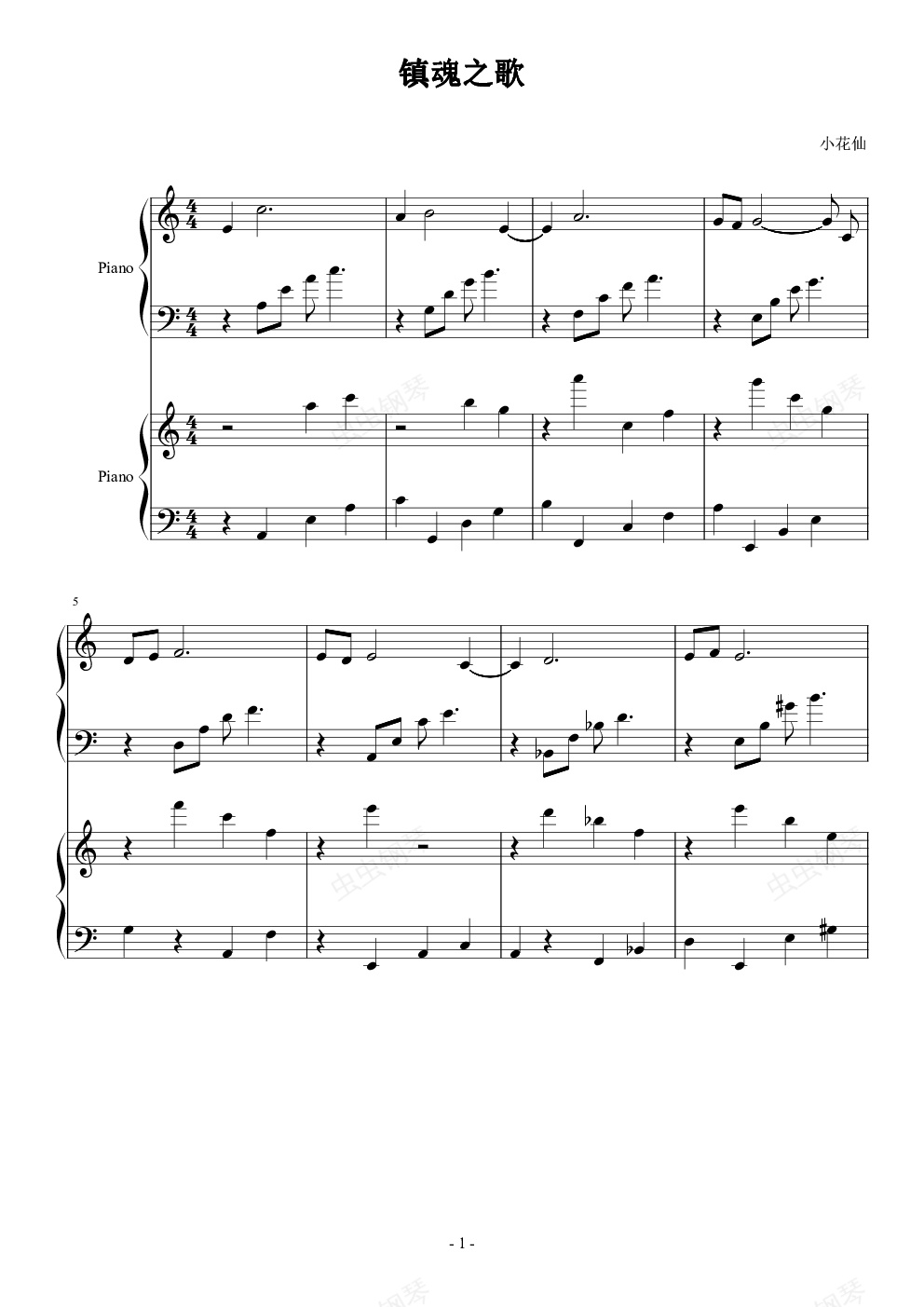 钢琴谱:镇魂之歌 - 小花仙 (总谱)